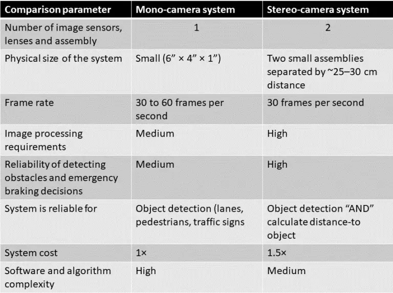 다음은 모노 카메라와 스테레오 카메라의 비교표입니다.